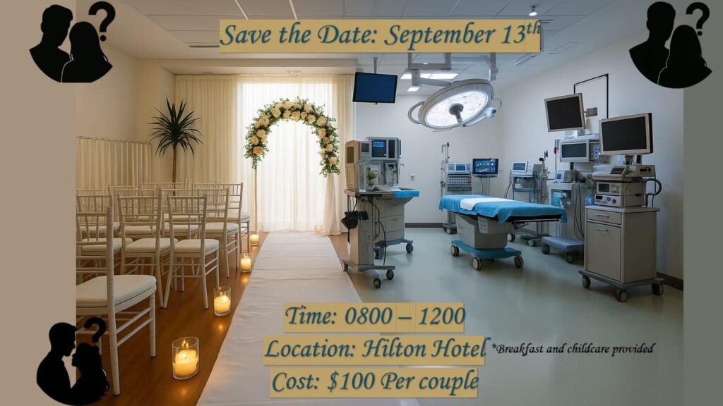 Tying the Knot & Under the Knife September 13, 2025 8:00 am - 12:00 pm 0 Comments0 Comments Hilton Hotel Save the Date! A Couples Event will be Held at the Hilton Hotel on September 13,2025 $100.00 per Couple. Limited Seating Available. The Event will be for 4 hours with Several Guest Speakers. Breakfast and Childcare will be Provided.